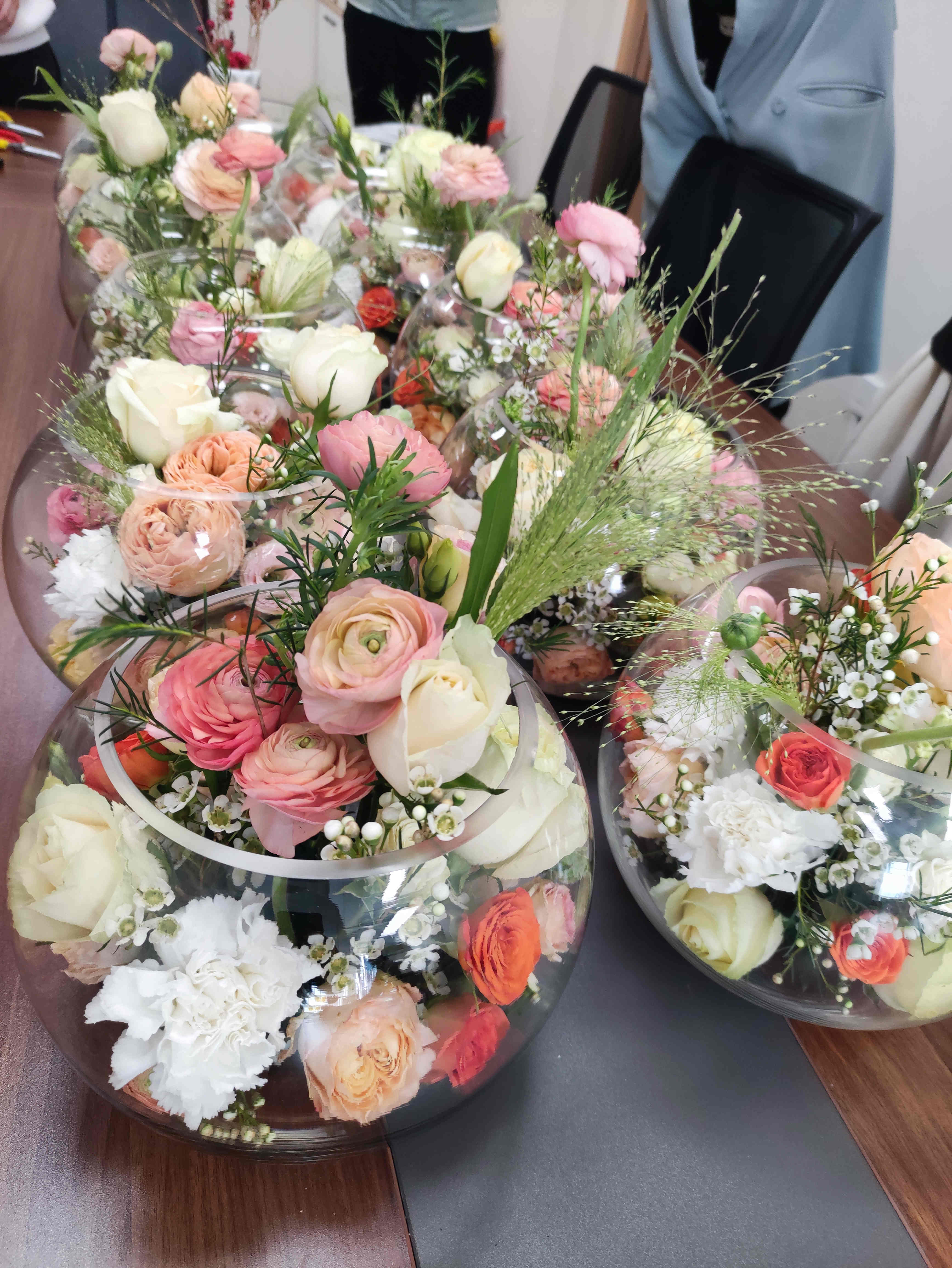 本次活動(dòng)邀請(qǐng)花店老師進(jìn)行現(xiàn)場(chǎng)授課,活動(dòng)開始,老師與女職工們互動(dòng)介紹了各種常見的花材種類,隨后為大家講述花材的特點(diǎn)以及鮮花養(yǎng)護(hù)的技巧。大家聽得津津樂(lè)道,積極發(fā)言,在老師重點(diǎn)講授插花的造型、點(diǎn)與面的結(jié)合、動(dòng)靜的分布等要點(diǎn)中,以鮮花來(lái)演示,讓女職工們直觀詳細(xì)地學(xué)習(xí)插花知識(shí)點(diǎn)。最后,在老師的耐心輔導(dǎo)下,大家的作品雛形初現(xiàn),花與花之間的搭配疏密聚散,各個(gè)作品鮮艷明麗、各具特點(diǎn),而鮮花和綠葉的搭配高低錯(cuò)落有致,別具一格。課堂氣氛輕松而愉悅,女職工們彼此欣賞作品,留影合拍。