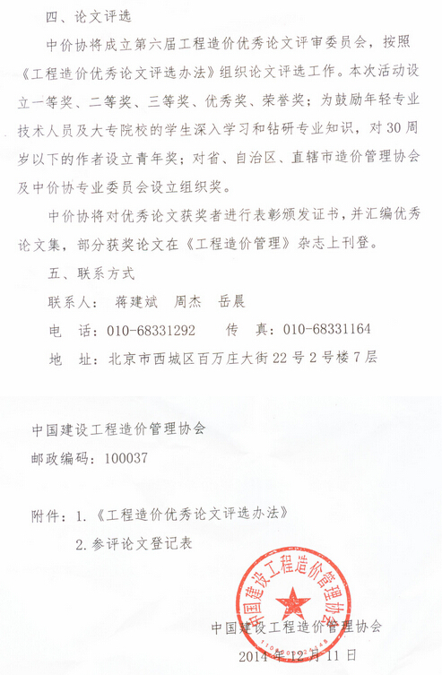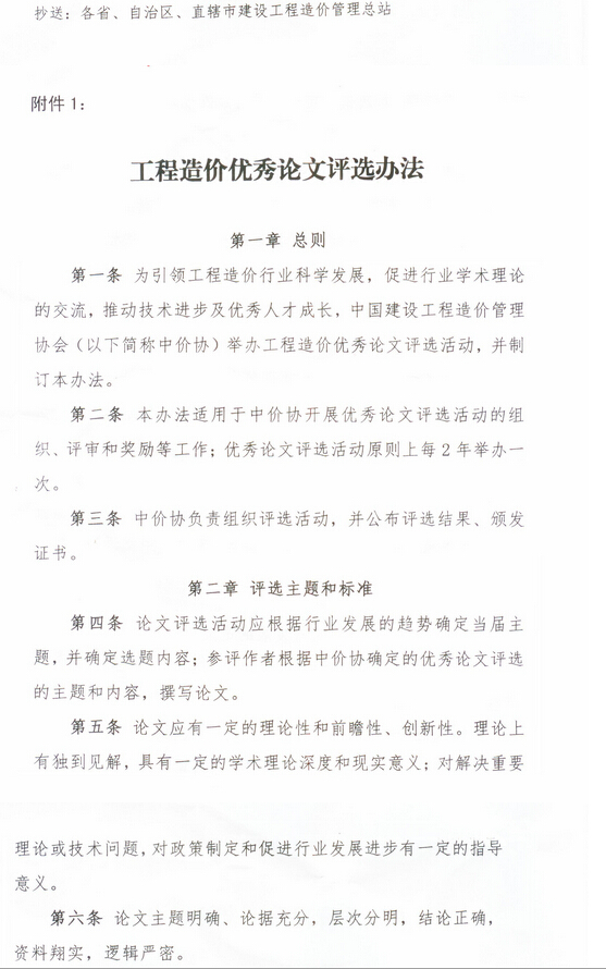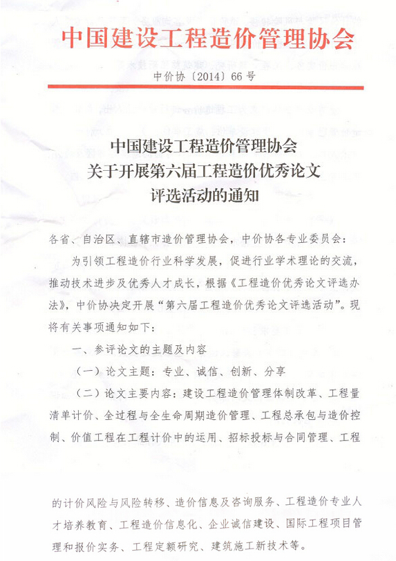 中國建設(shè)工程造價管理協(xié)會關(guān)于開展第六屆工程造價優(yōu)秀論文評選活動的通知