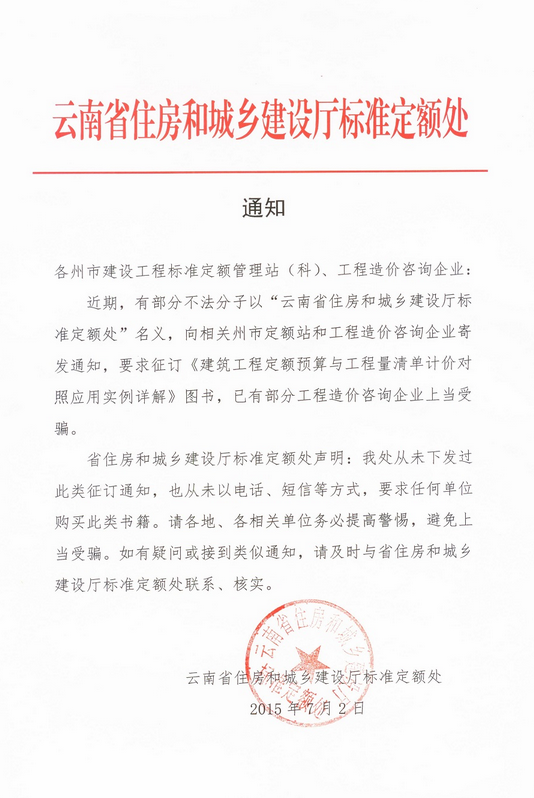 云南省住房和城鄉(xiāng)建設(shè)廳標(biāo)準(zhǔn)定額處通知