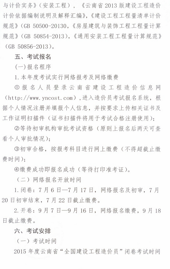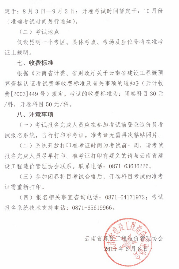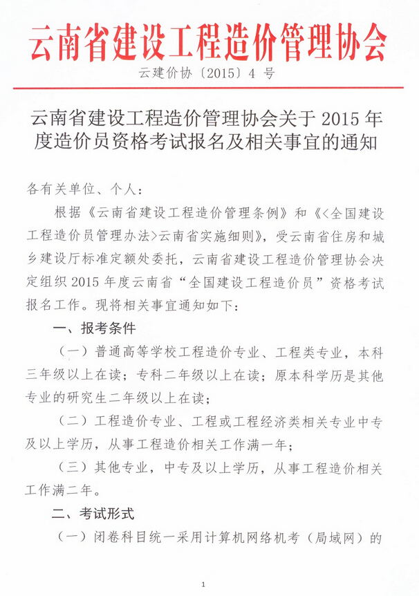 云南省建設(shè)工程造價管理協(xié)會關(guān)于2015年度造價員資格考試報名及相關(guān)事宜的通知
