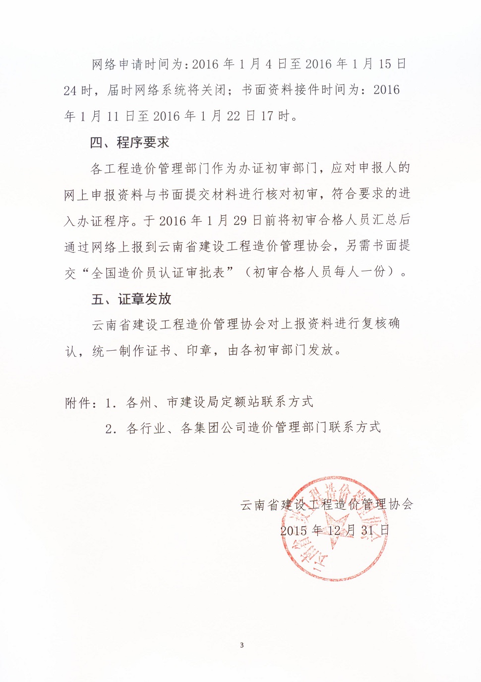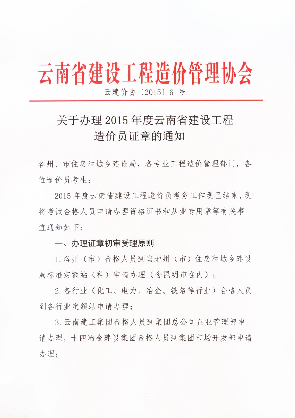 關(guān)于辦理2015年度云南省建設(shè)工程造價員證章的通知